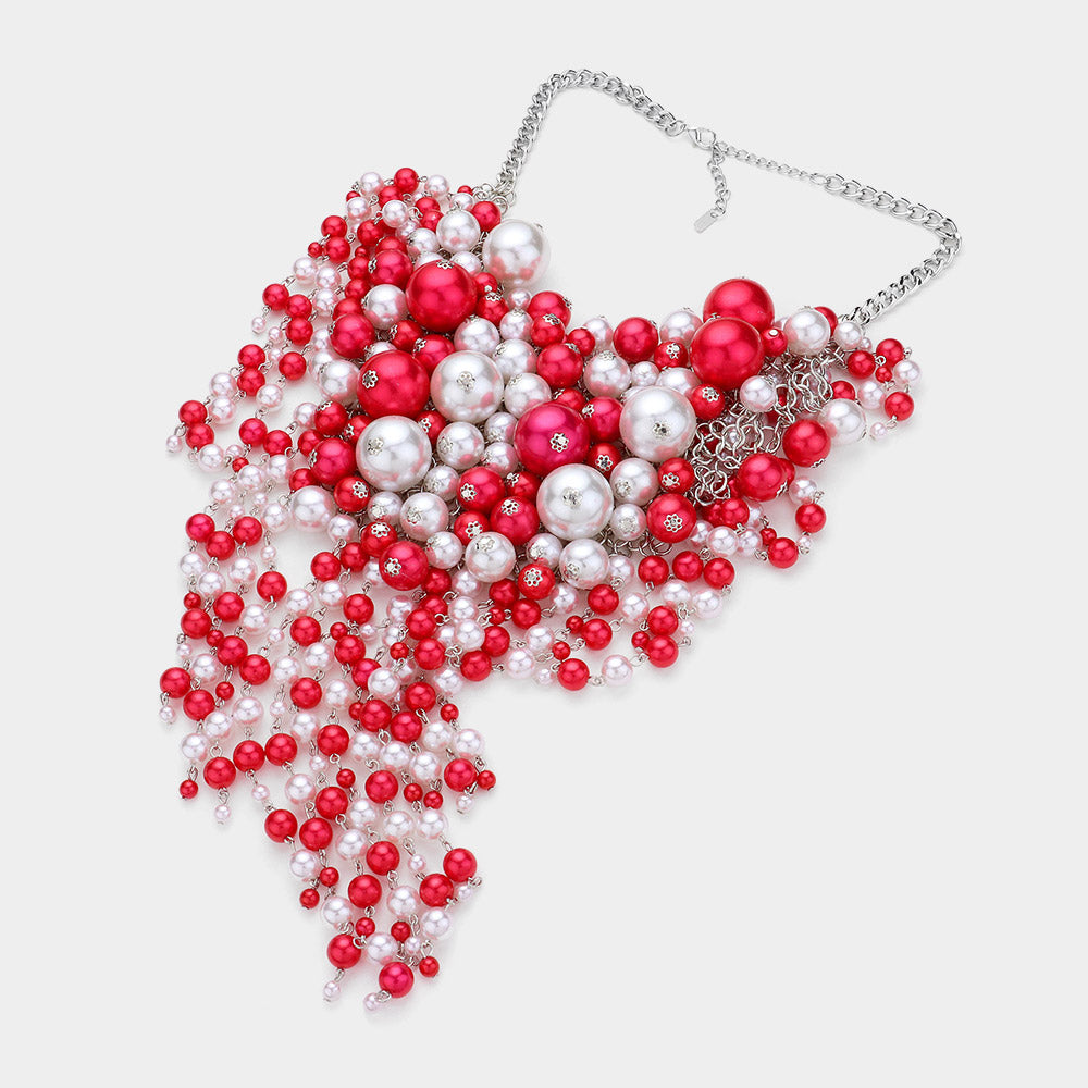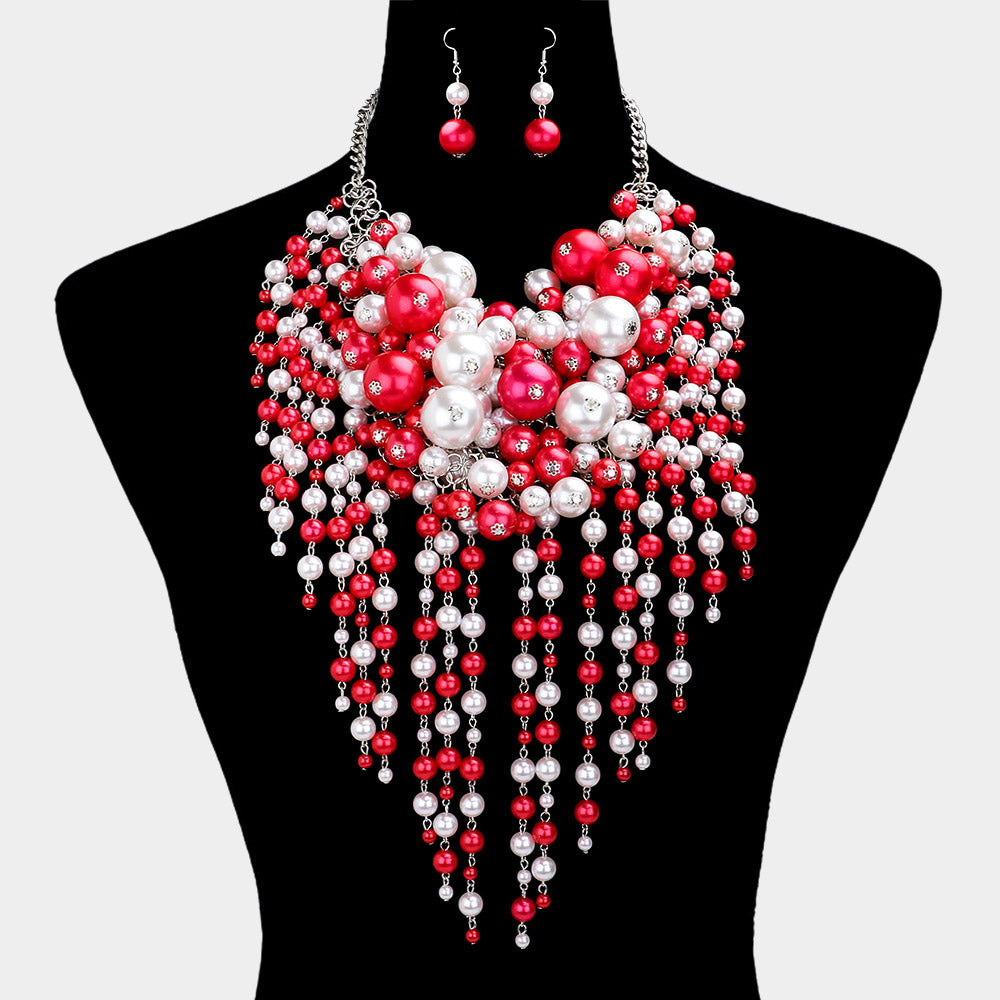 5 Multi Pearl Fringe Statement Necklace