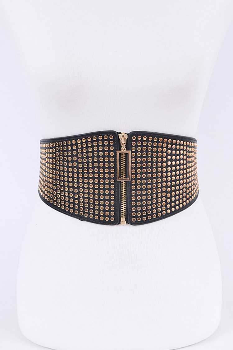 Black Elastic Studded Statement Belt
