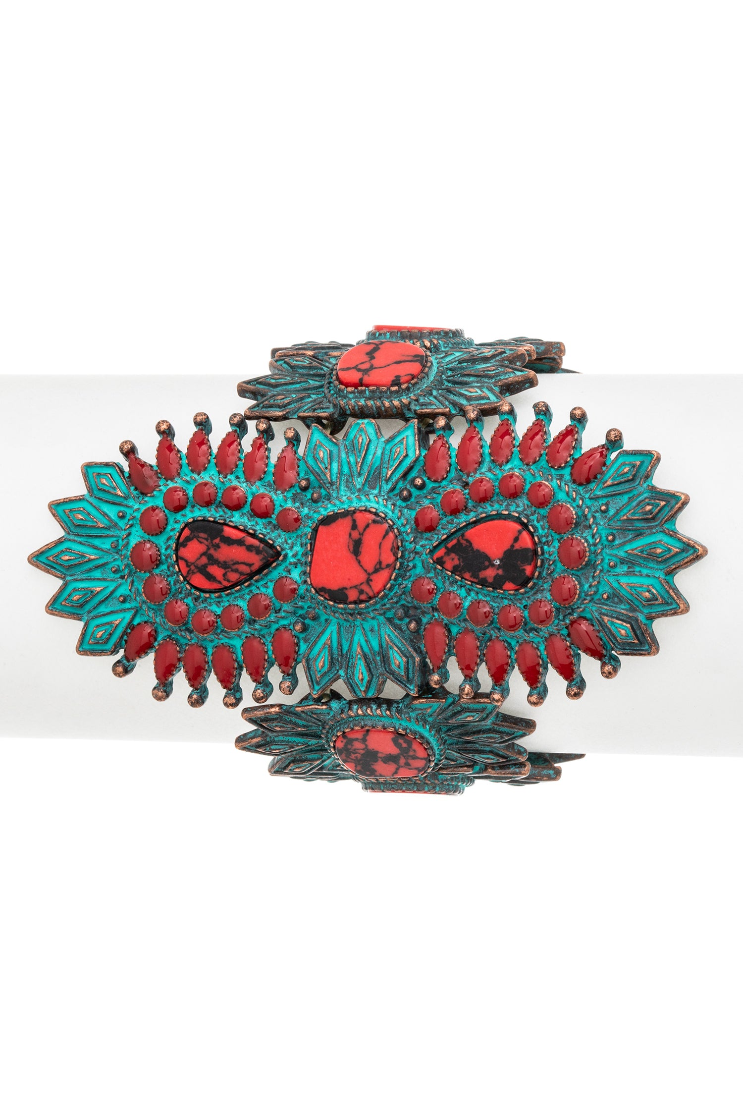 Bey Country Glam Red & Turquoise Western Stretch Bracelet