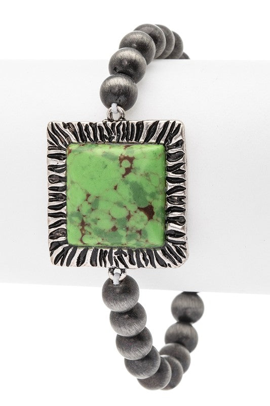 Square Stone Navajo Beads Stretch Bracelet